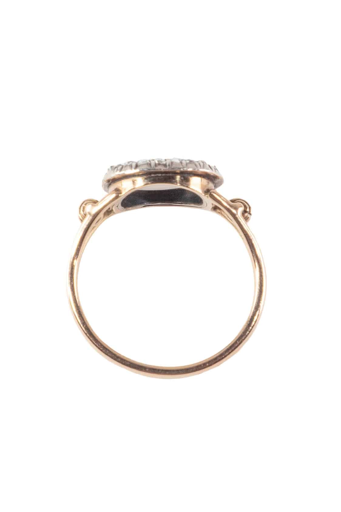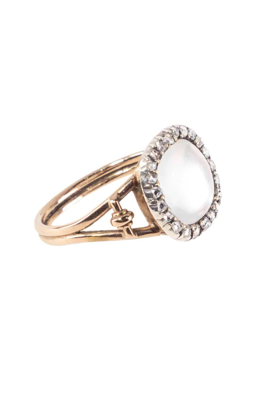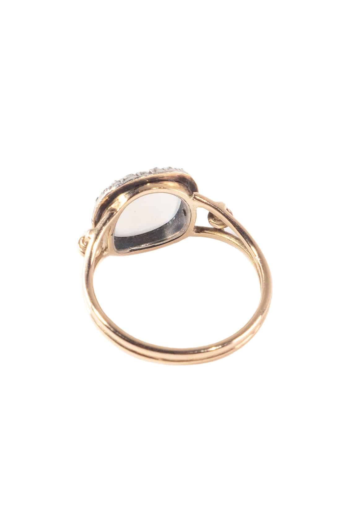 Home » Shop » Um 1900 – 18 ct. Gold Ring / Verlobungsring mit Mondstein & Diamanten, aus dem viktorianischen England