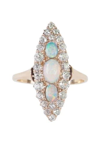 Um 1910 – Opale & Diamanten 18 ct. Goldring in Navetteform
