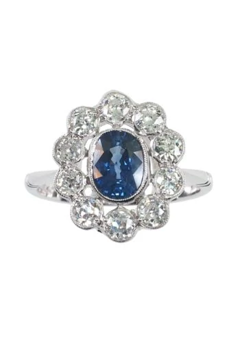 Um 1930 – Diamanten & Saphire Art déco Verlobungsring