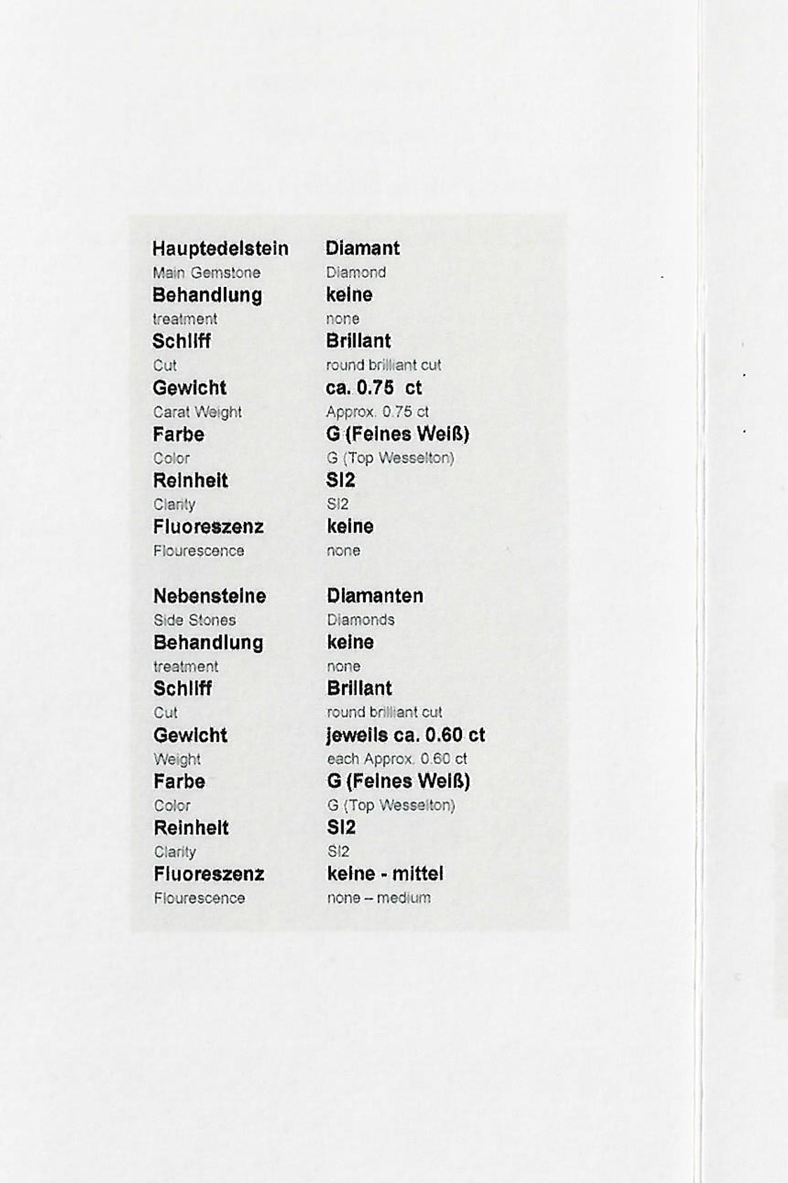 Ein gemmologisches Zertifikat über die Edelsteine liegt vor und wird beim Kauf überreicht. Die Diamanten sind folgendermaßen bewertet: