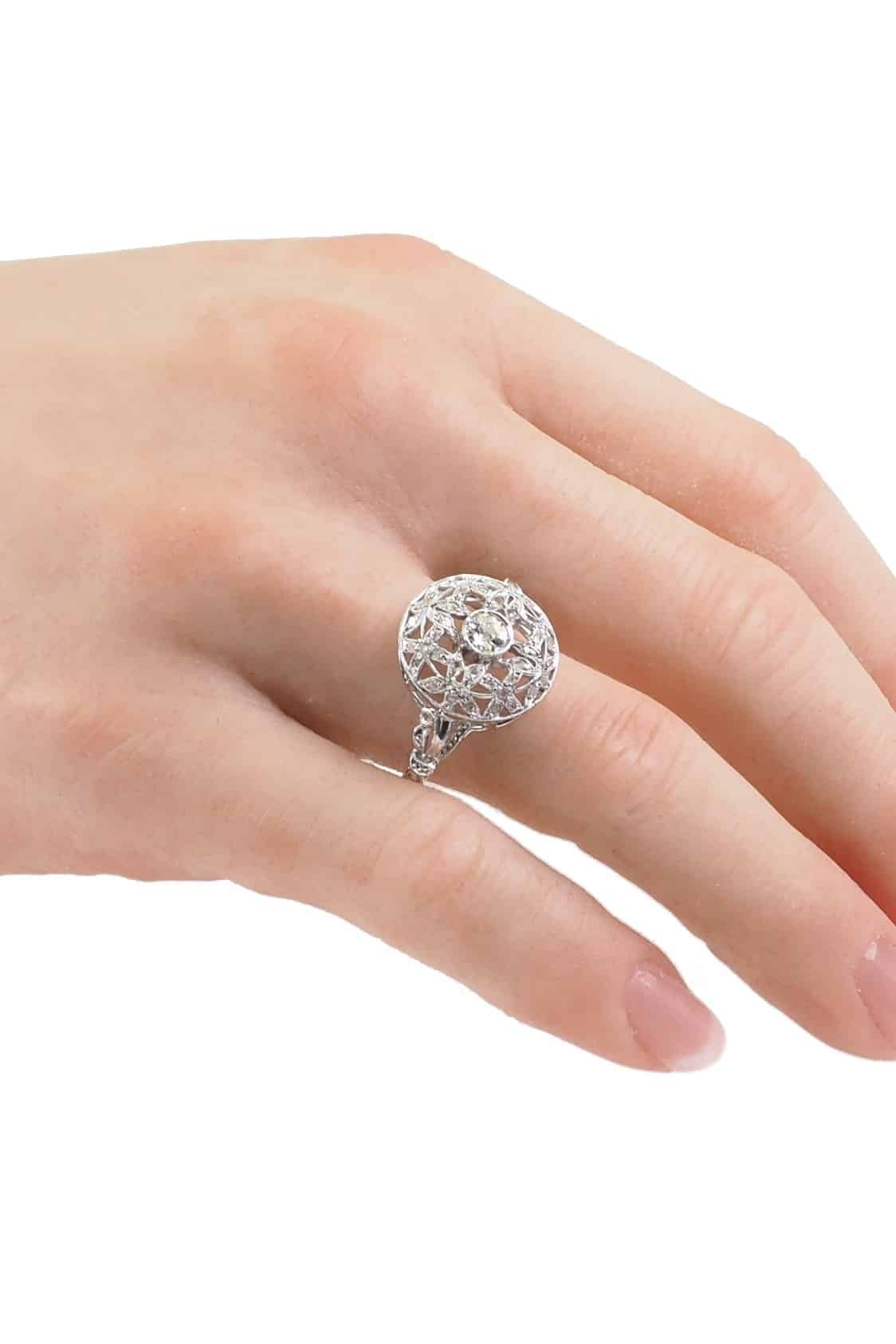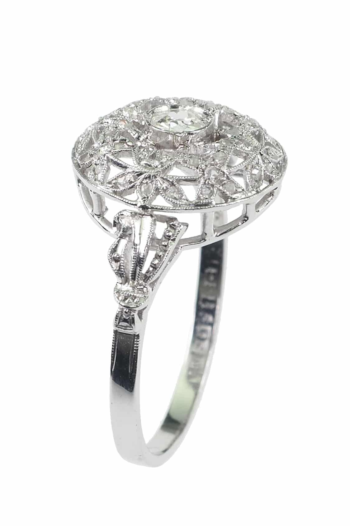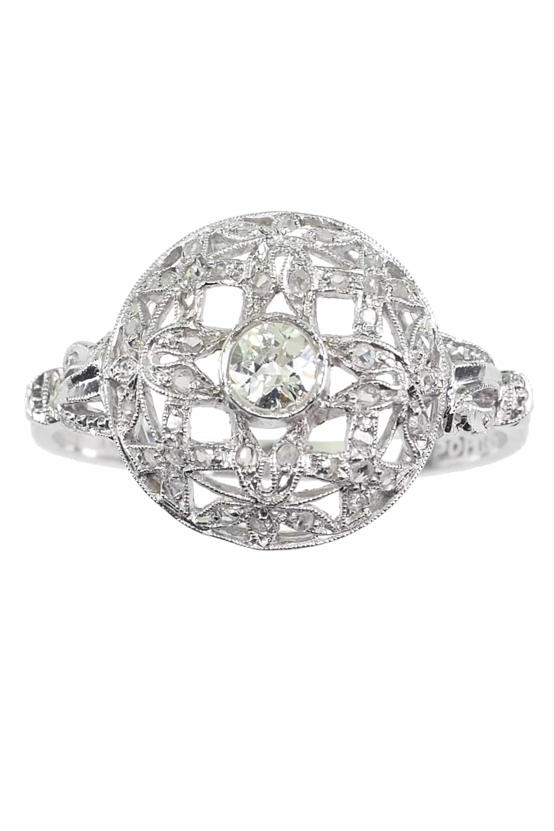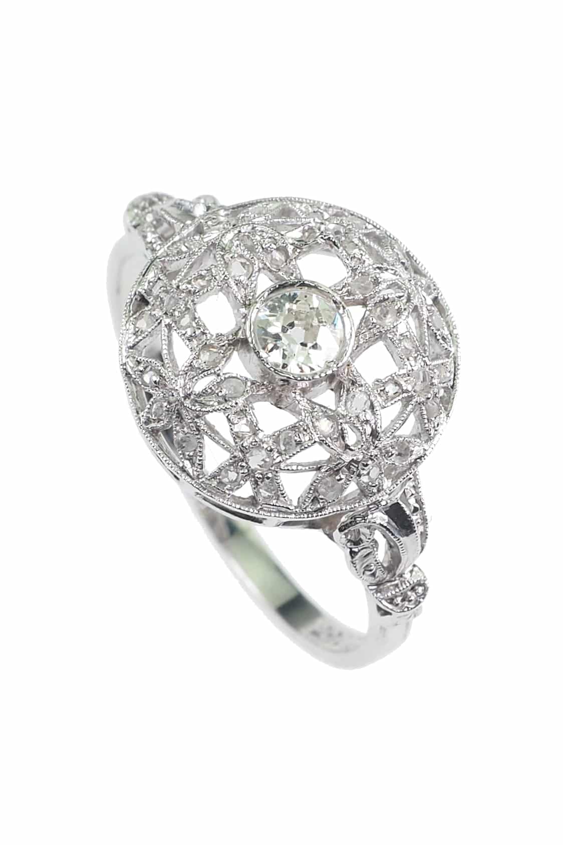 Zentraler Diamant im alten Brillantschliff.