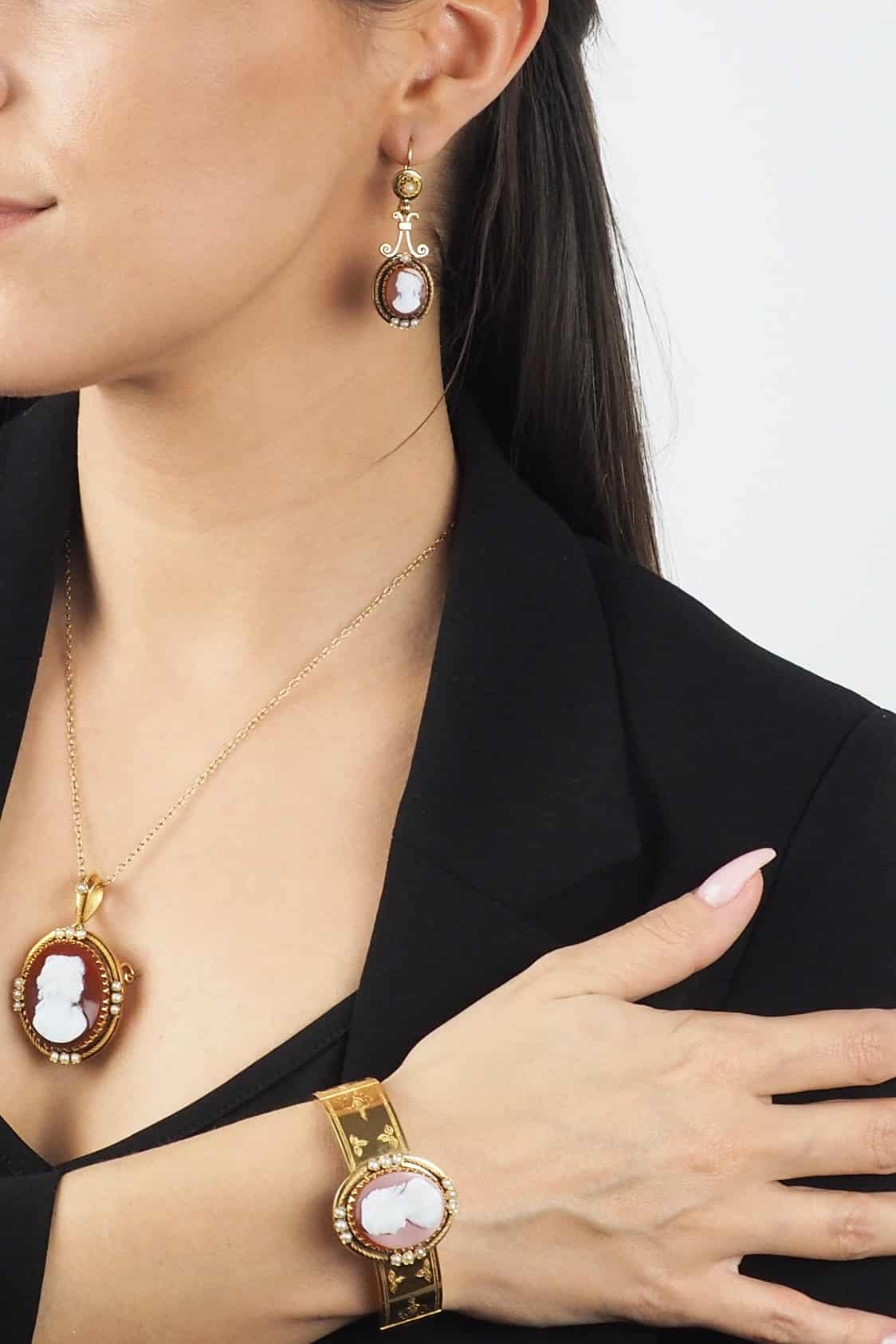 Jewellery set of Bangle, Pendant/Brooch and Earrings.