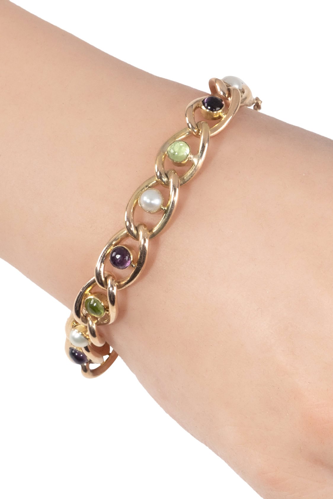Peridots, pearls & amethysts
