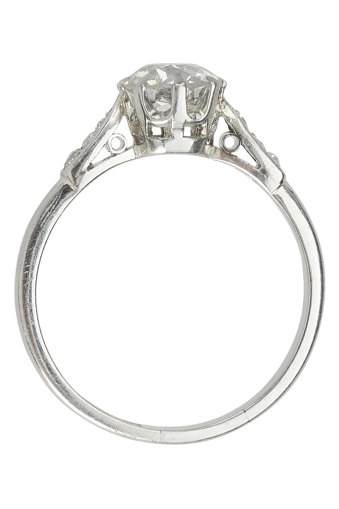 6 side diamonds in single cut, total weight ca. 0,04 ct.