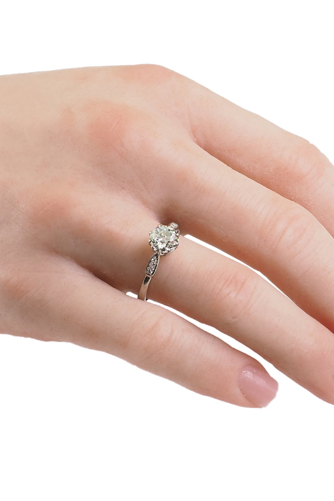 Diamond solitaire in old-mine cut, weight ca. 0,85 ct.