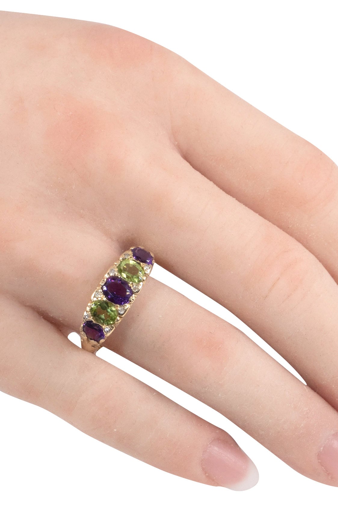 Peridots, diamonds & amethysts