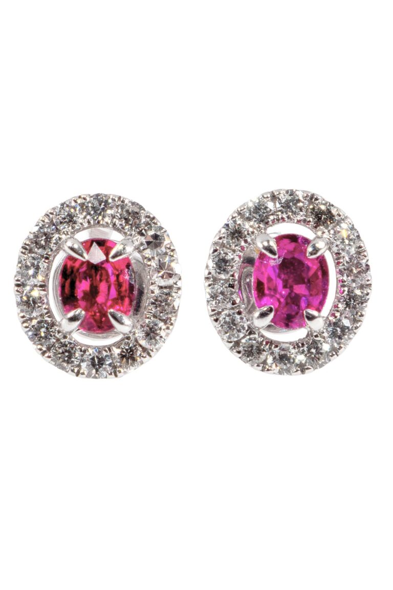 - Earrings or mostly stud earrings made of at least 14 carat yellow gold or white gold → The antique ruby stud earrings as well as vintage stud earrings are often adorned with a central ruby in a “special” cut,.necklace as well as pendant with chain, made of at least 14 carat or 15 carat yellow gold, rarely set alone with a ruby solitaire → usually accompanied by diamonds.