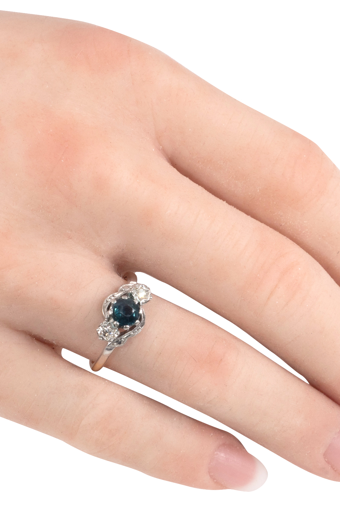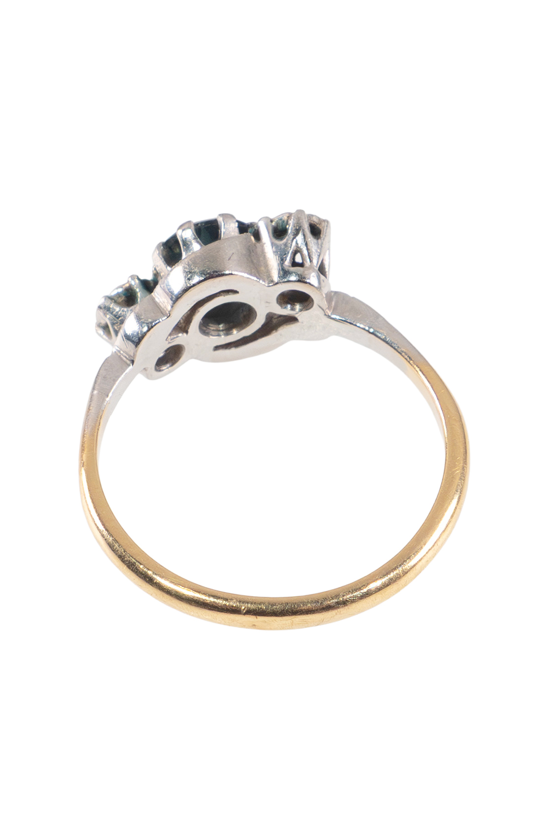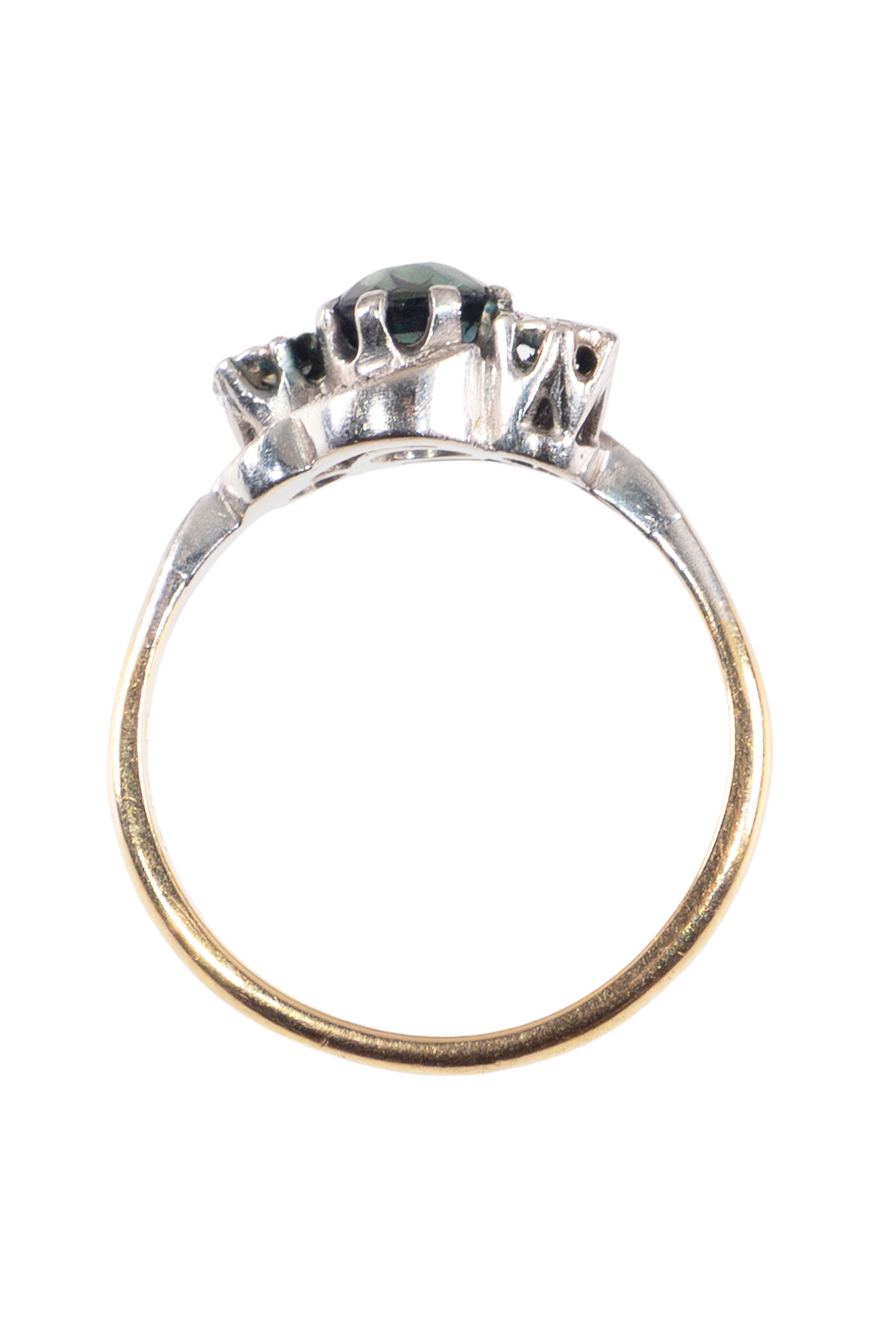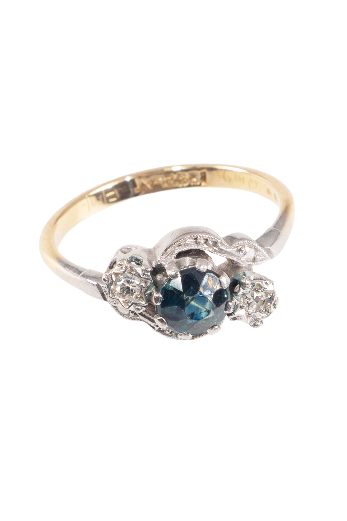 Ring – 18 ct gold (750), platinum 1 sapphire with ca. 0,3 ct Diamonds with ca. 0,15 ct Art nouveau - England approx. 1910 International ring sizes: DE – 51 GB – K/L US – 5 ¾ Ring-head size: ca. 0,81 x 1,23 cm (0.32 x 0.48 inches) Weight: ca. 2,82 g Product No.: 1249