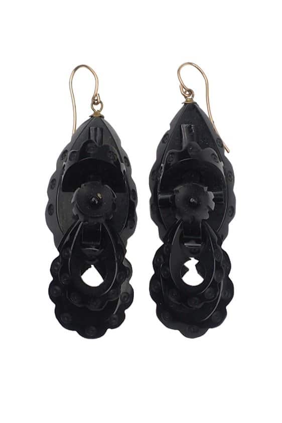 Earrings – Whitbyjet, carved and polished