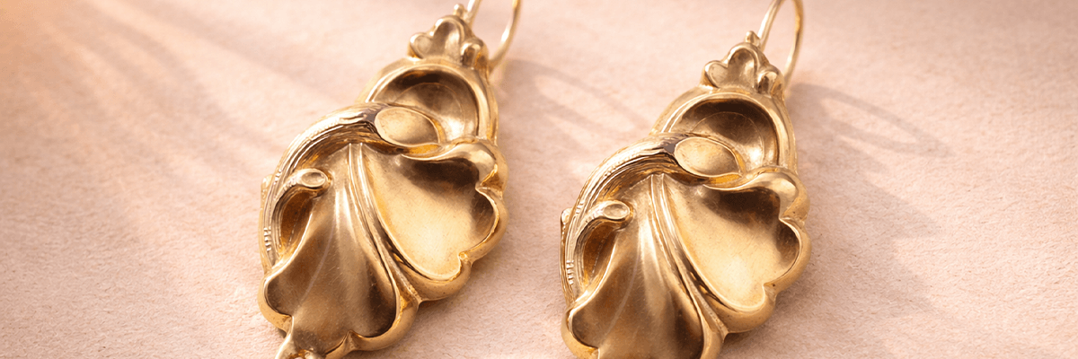 Tombake sind kupfer- und zinkbasierte Legierungen mit einem sehr hohen Kupfergehalt von mind. 80%. Tombak wurde vor allem in Böhmen für dessen weltbekannten antiken Granatschmuck, die Böhmische Granate, verwendet. Der je nach Legierung auch goldfarbene Tombak wurde im Biedermeier und Historismus sinnigerweise „das Gold der armen Leute“ genannt. Davon gänzlich unbeeindruckt sprechen wir Kunsthistoriker auch bei antikem Messing- und Tombakschmuck von meisterhaftem Schmuck!