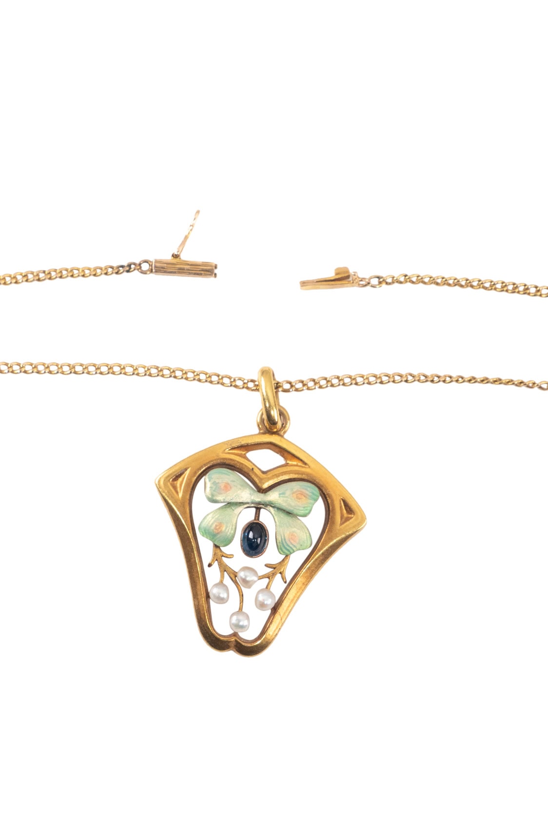 Um 1900 – Anhänger mit Perlen, Saphir und Emaille