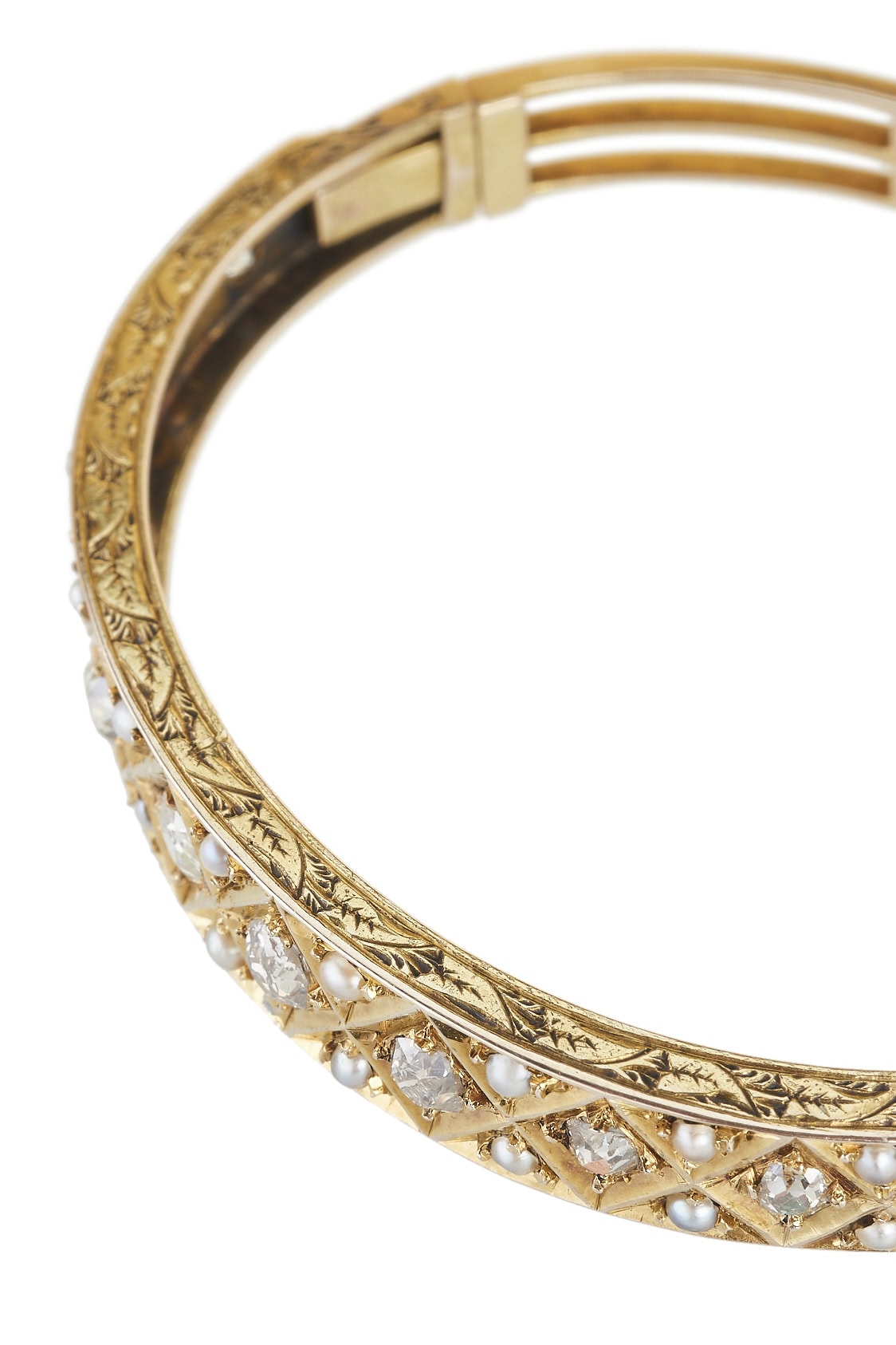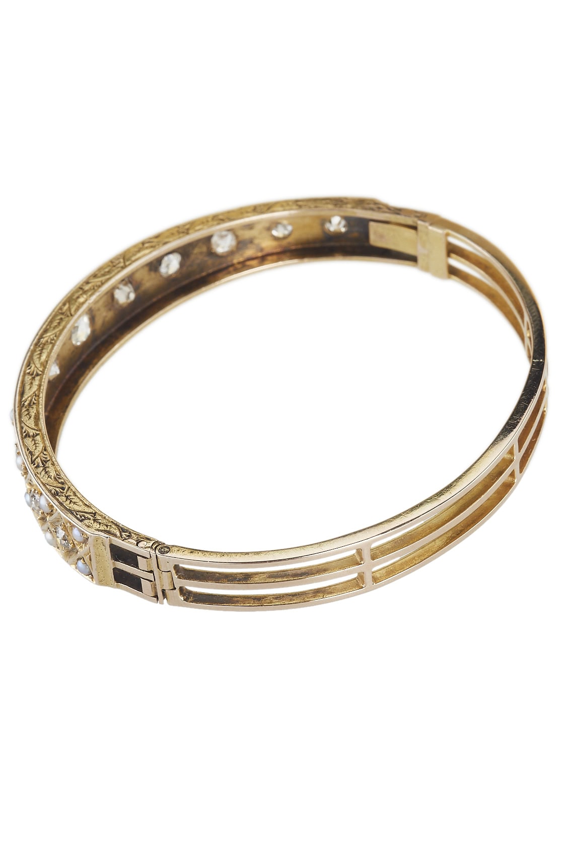 Um 1880 – Goldarmreif mit Perlen und Diamanten