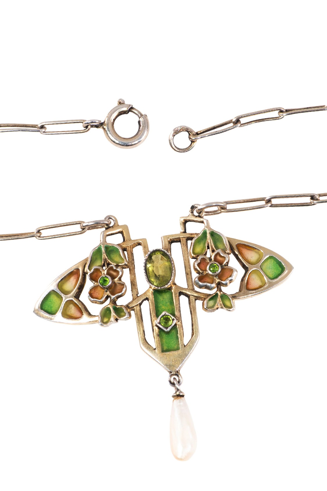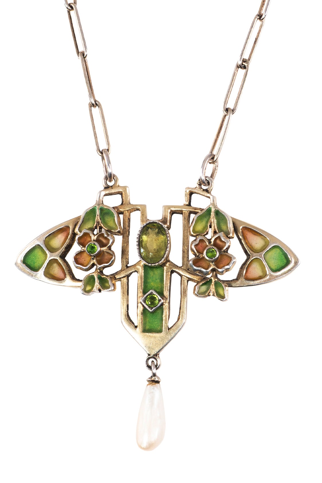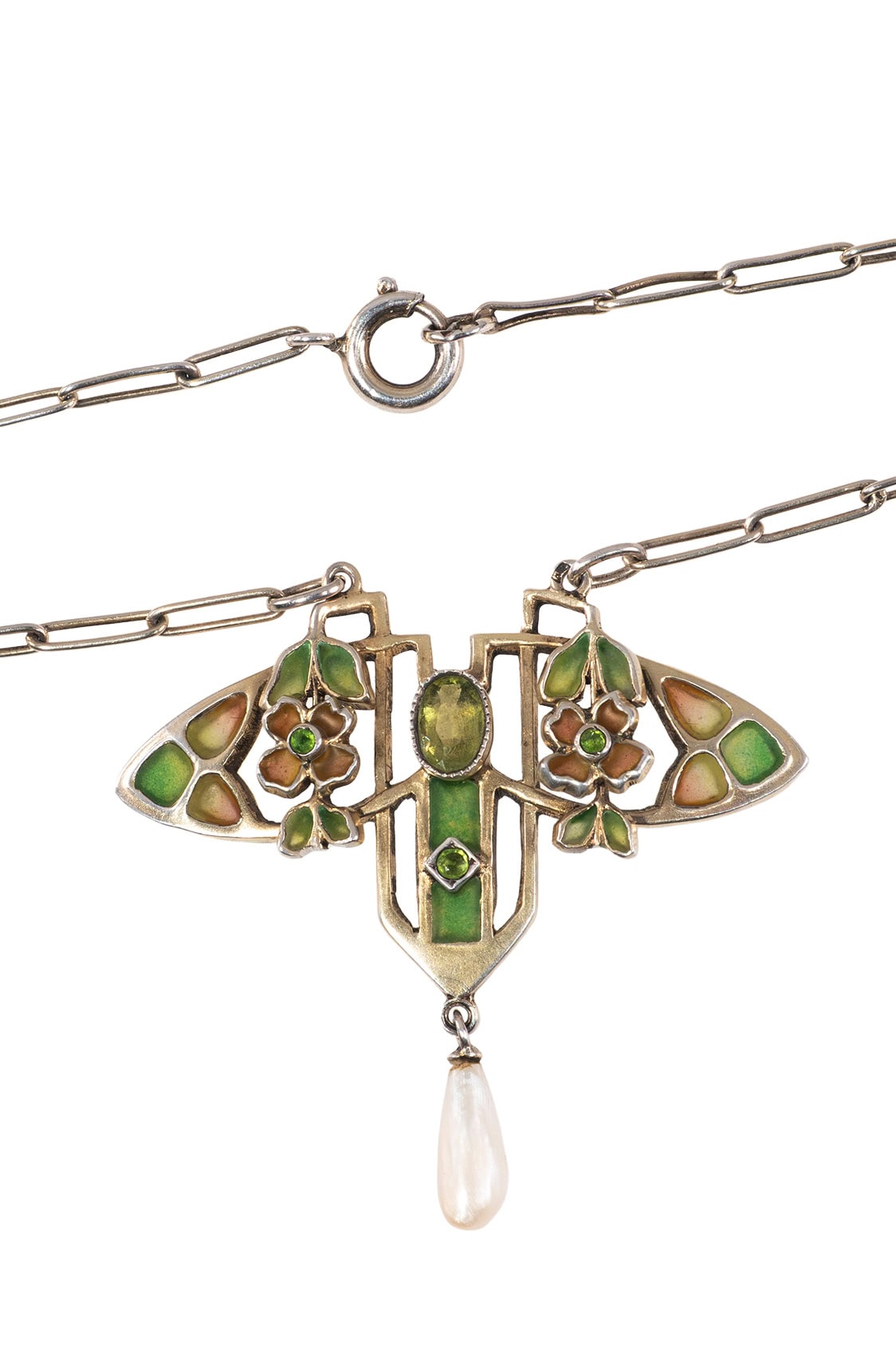 Schlagwörter: Antikschmuck - bis etwa 1950, art Nouveau, August ∞ Peridot, Emaille, Juni ∞ Mondstein & Perle, München, Peridot, Perlen, Silber