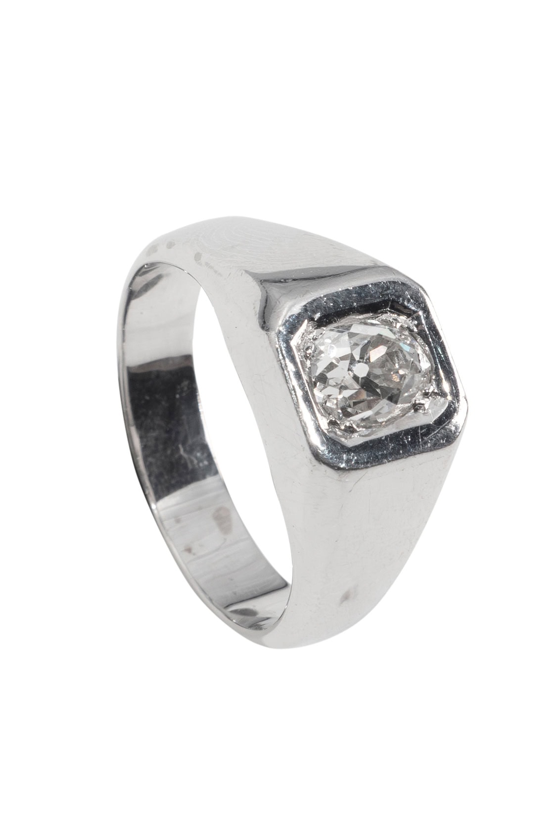 Um 1960 – Herrenring in Weißgold mit Diamant