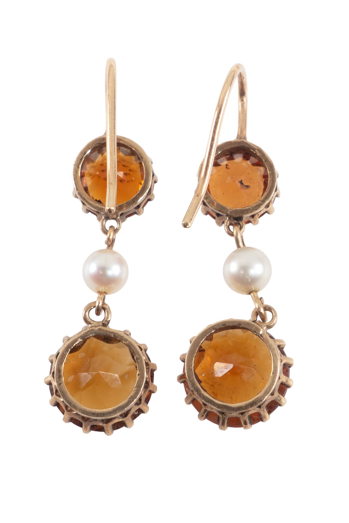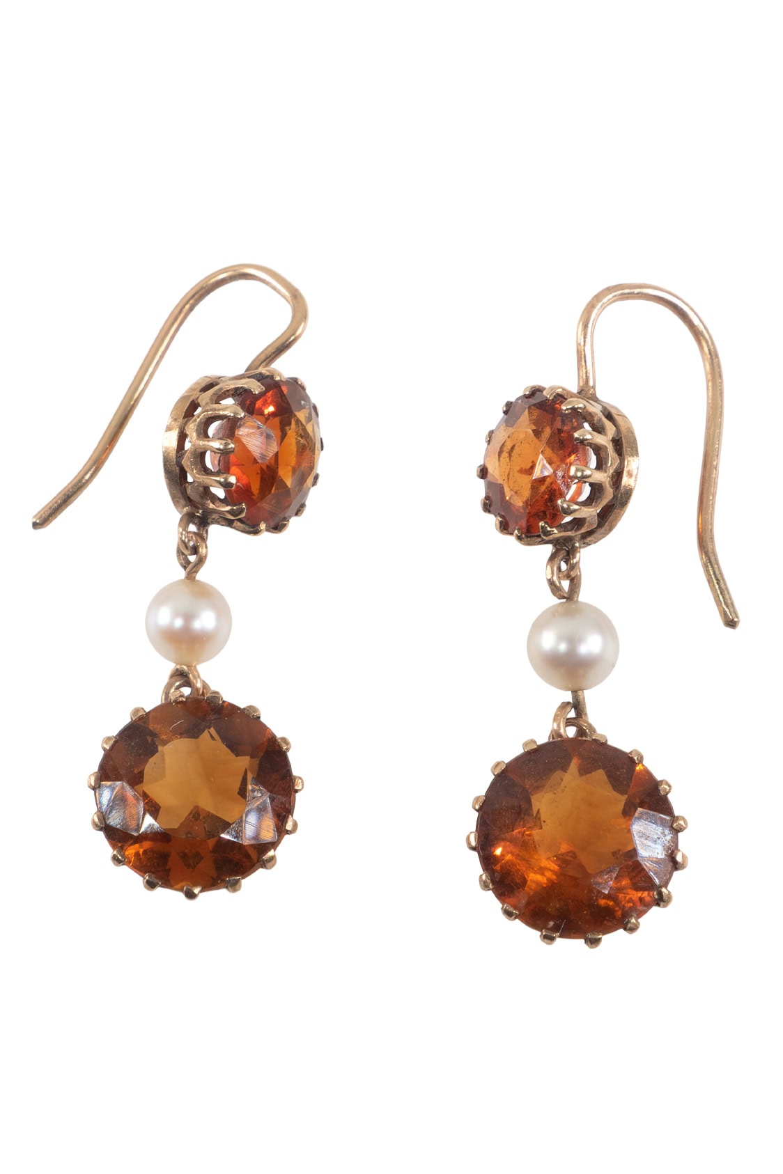 Um 1960 – Vintage Ohrringe mit Citrin und Perle