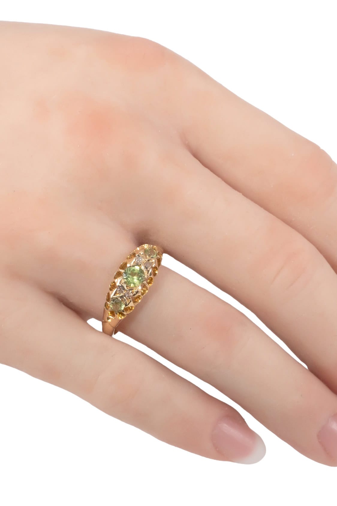 Datiert 1910 – Edwardianischer Goldring mit Peridot und Diamanten