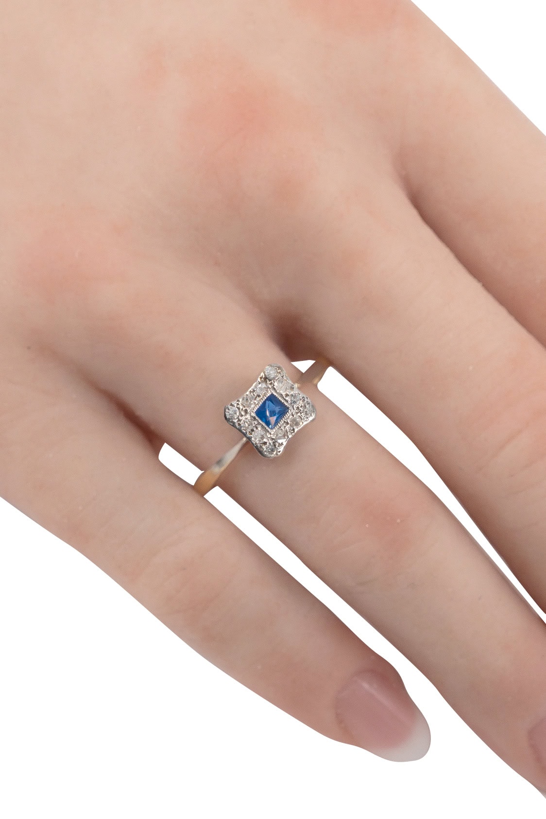 Um 1920 – Art Déco Ring mit Diamanten und Saphir
