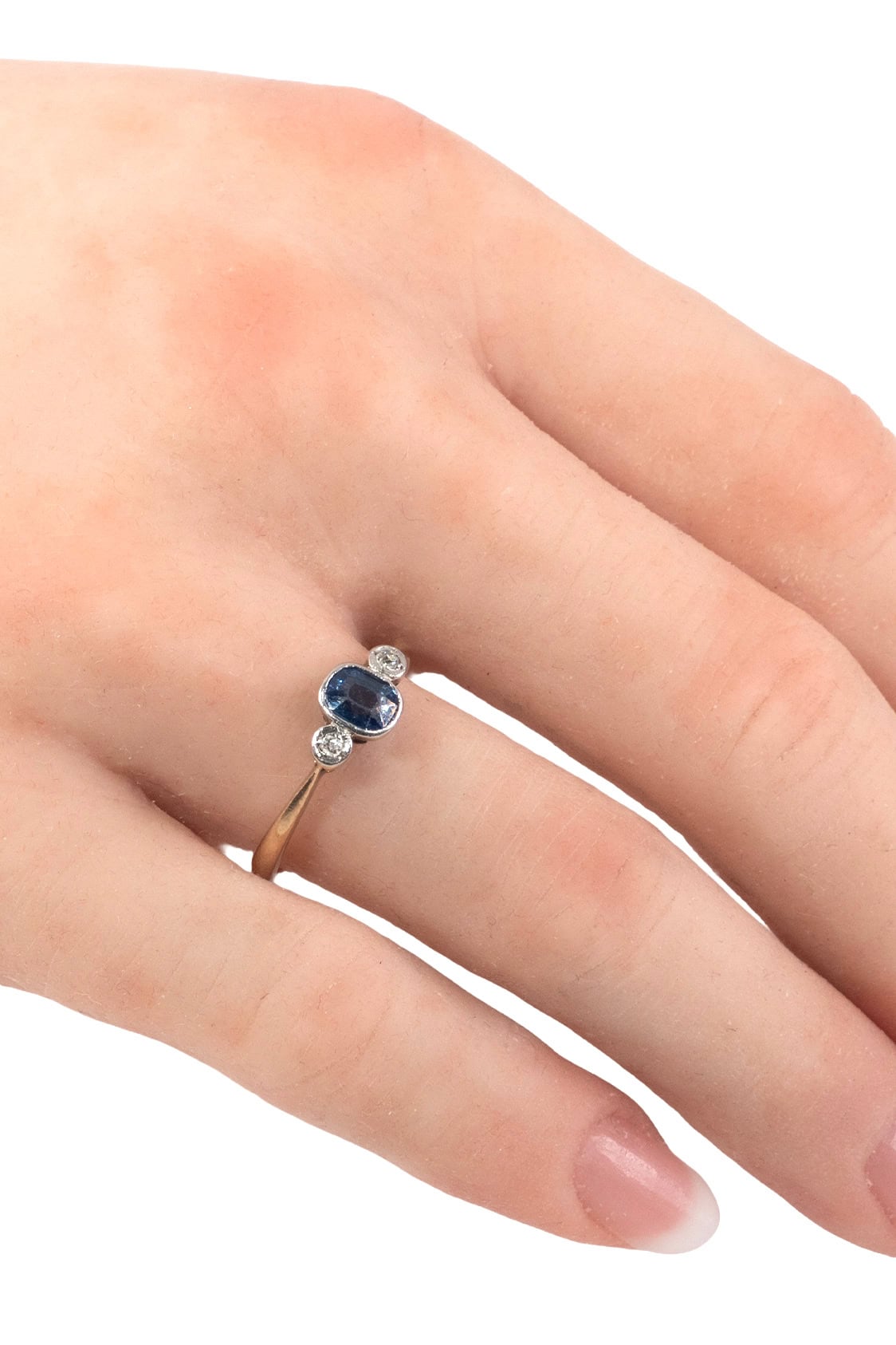 Um 1920 – Trilogy Ring mit Saphir und Diamanten