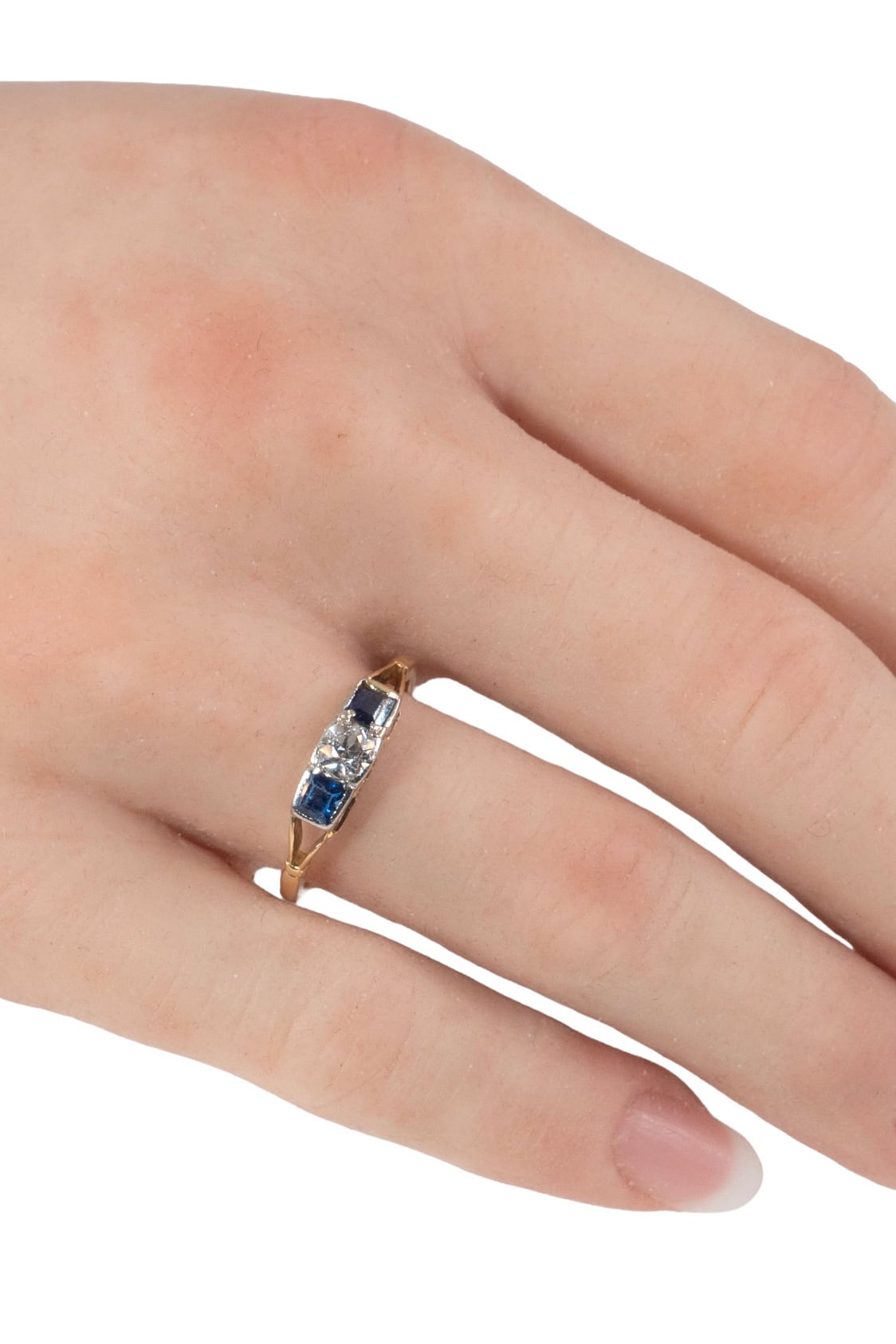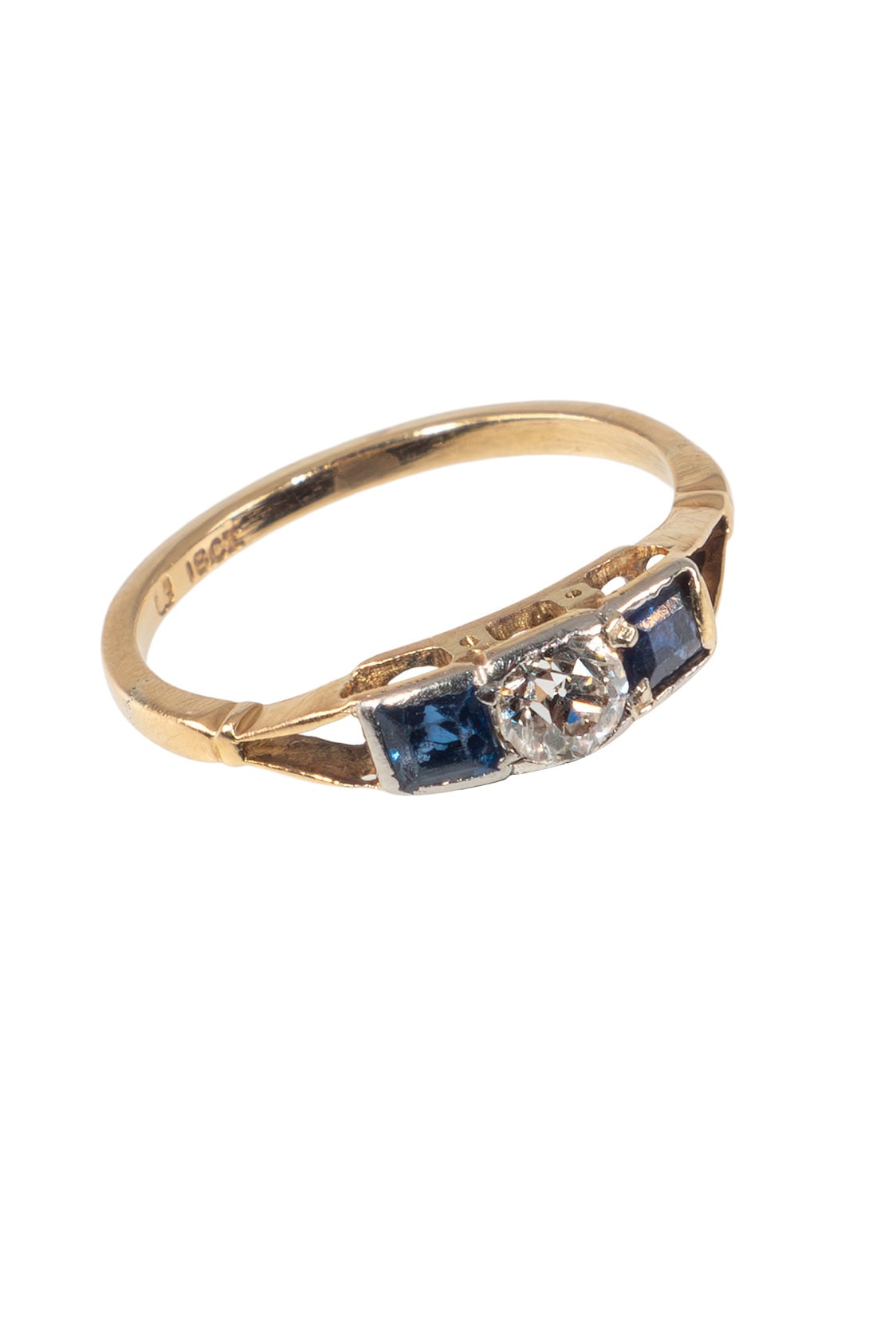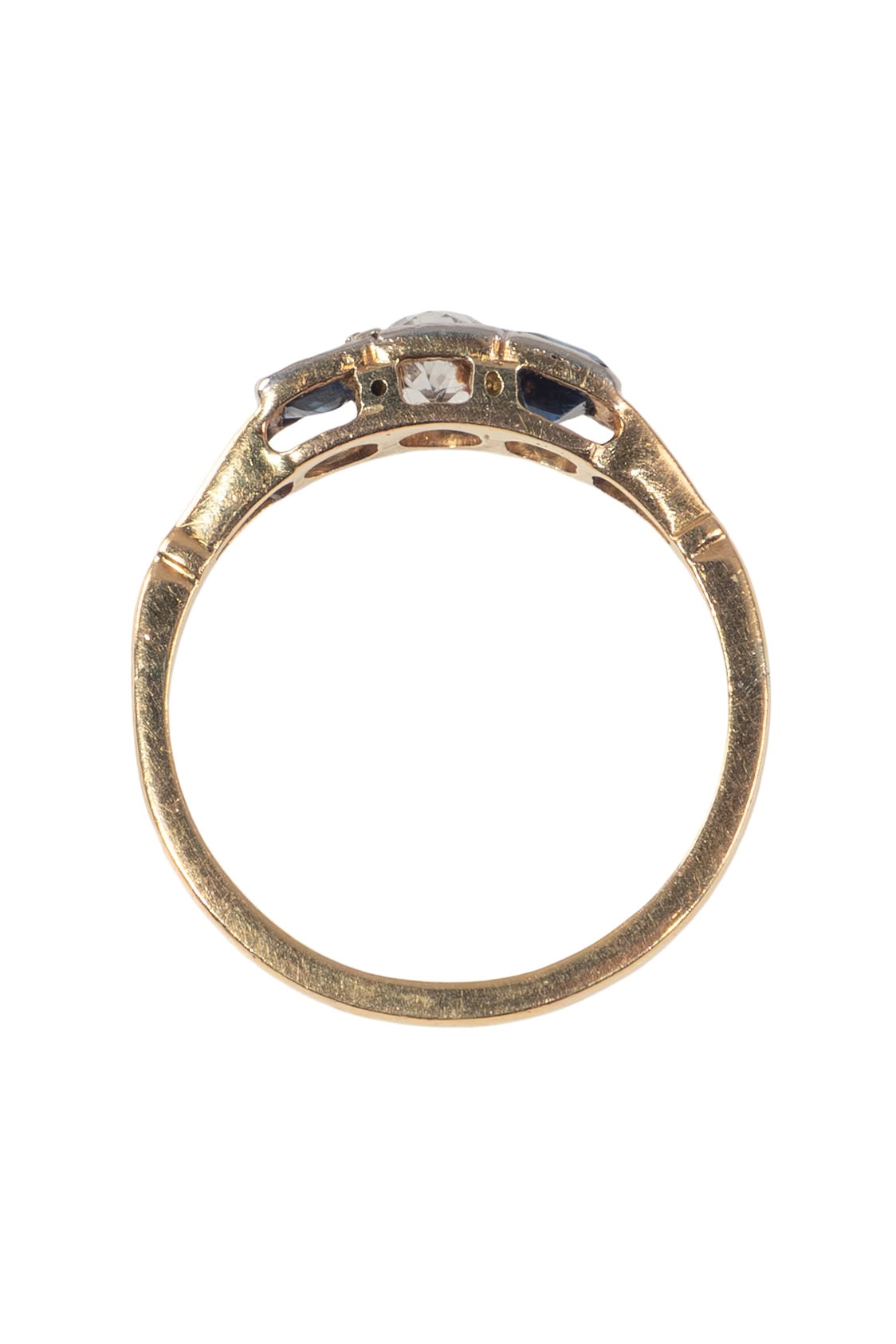 Um 1930 – Trilogy Ring mit Saphiren und Diamant