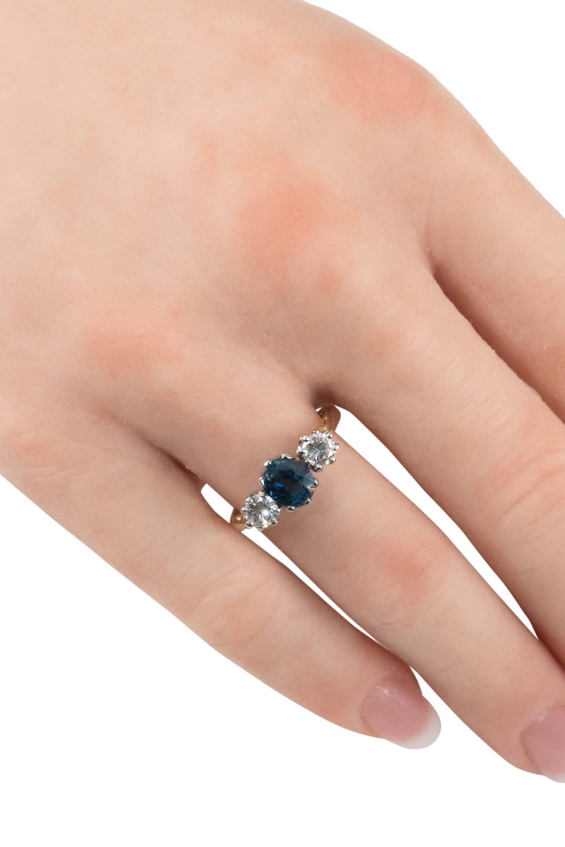 Um 1950 – Trilogy Ring mit Saphir und Diamanten