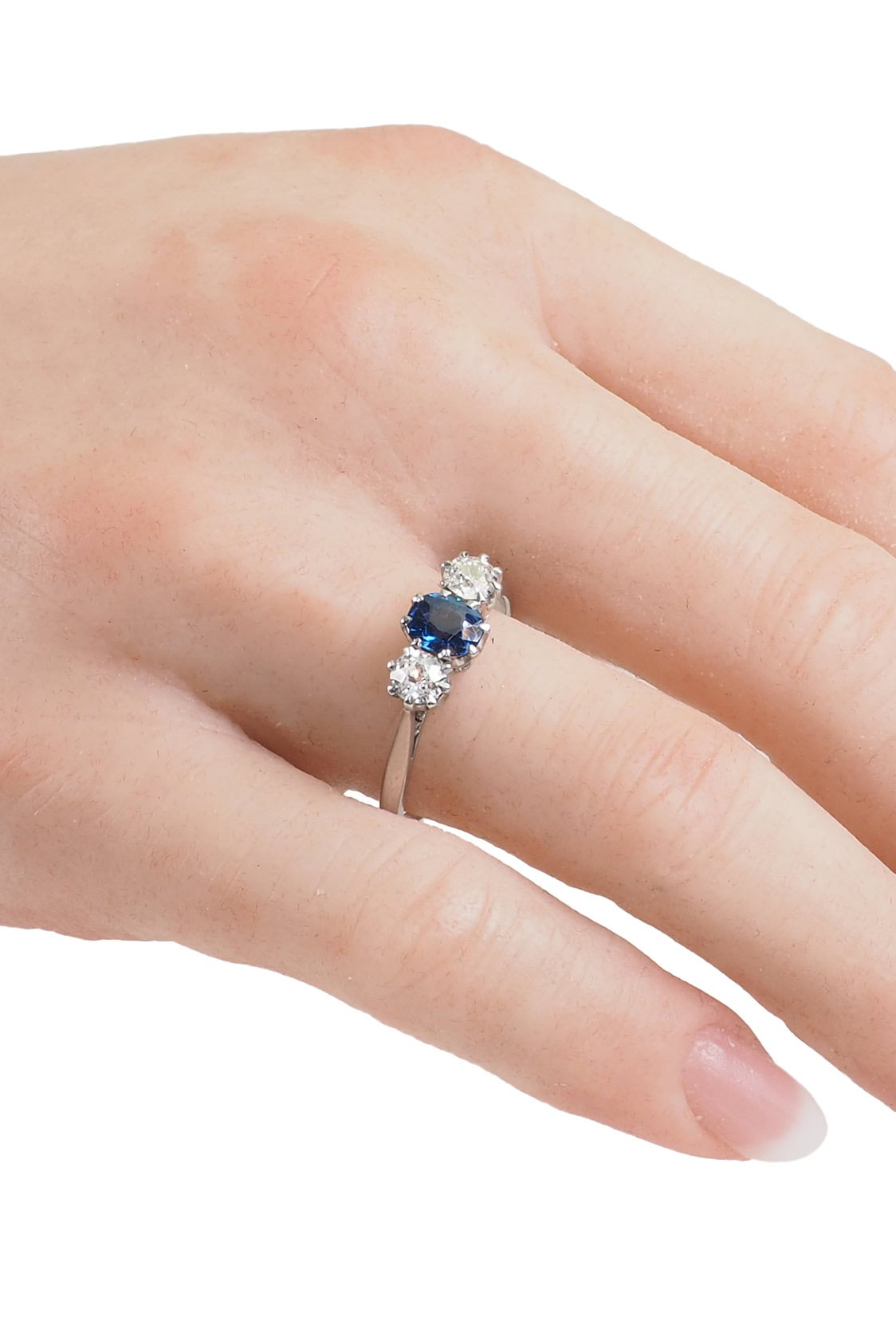 Um 1950 – Vintage Trilogie Ring mit Saphir und Diamanten