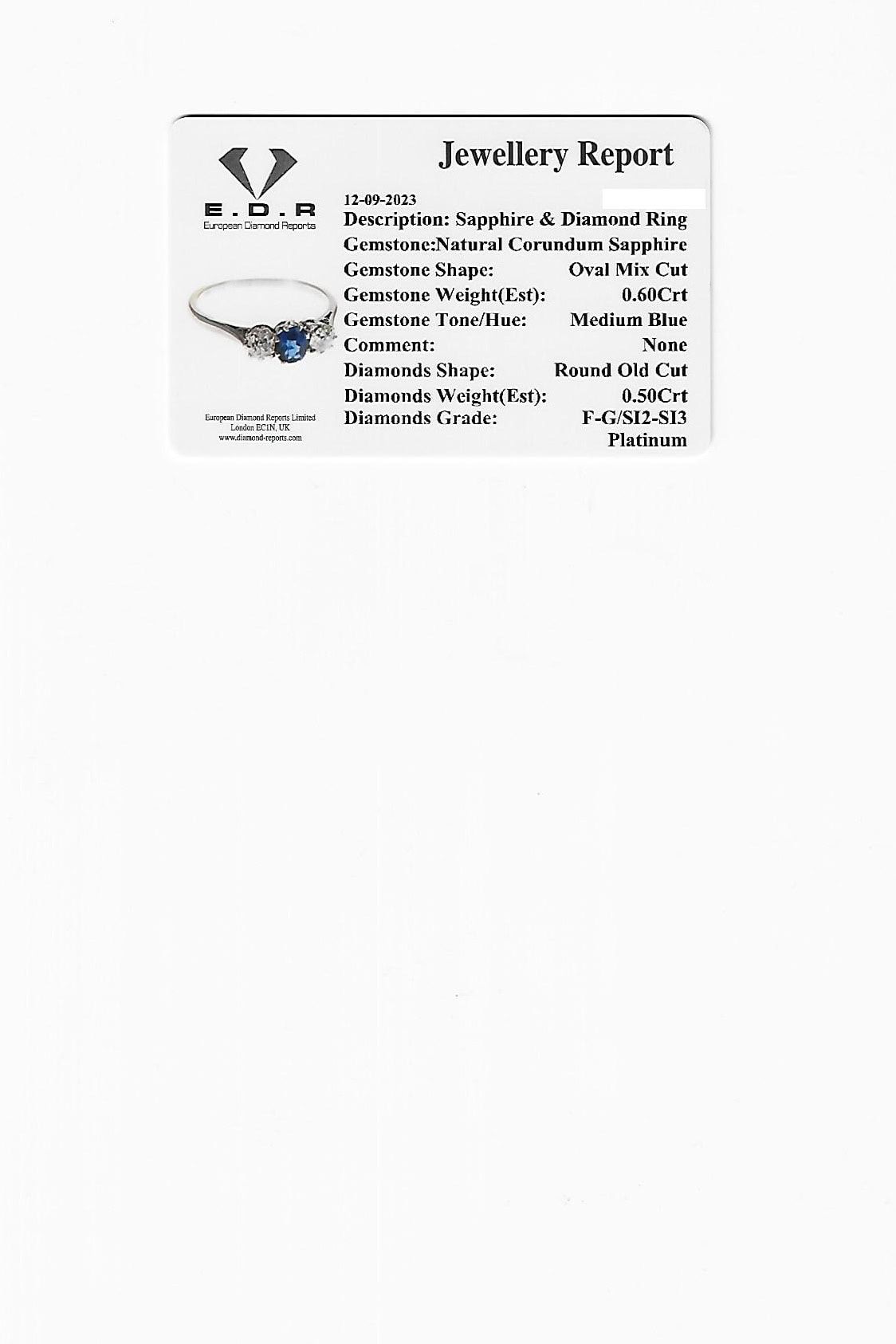 Ein gemmologisches Zertifikat über die Edelsteine liegt vor und wird beim Kauf überreicht. Die Edelsteine sind folgendermaßen bewertet:
