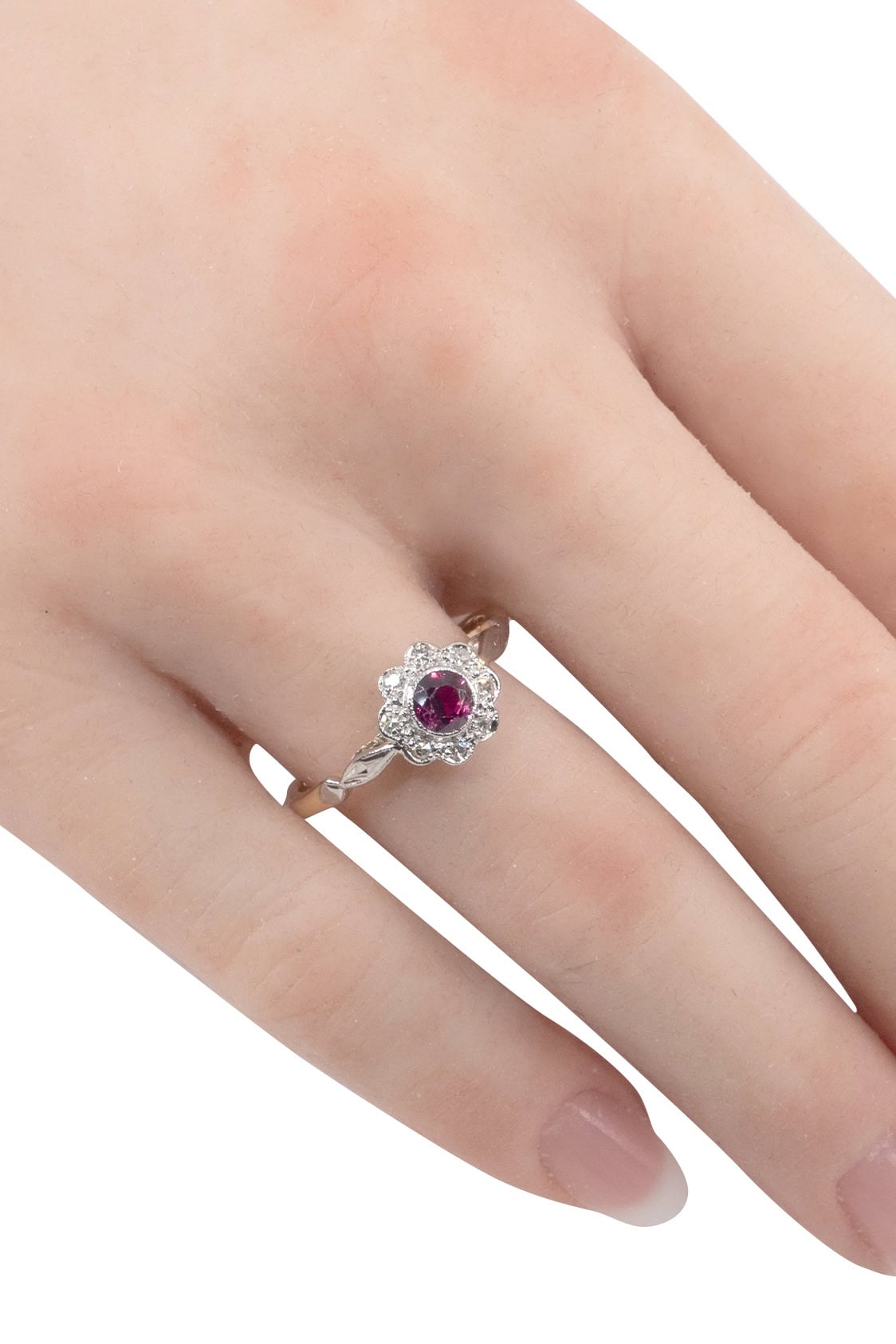 Um 1960 – Entourage Ring mit Rubin und Diamanten
