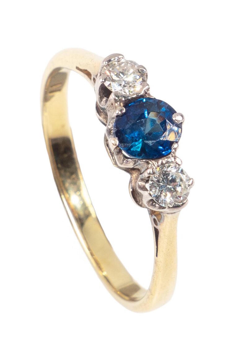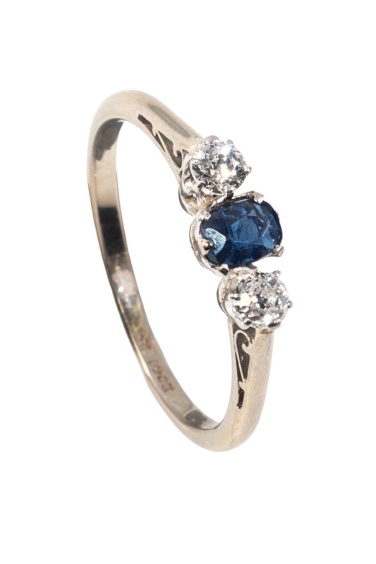 - Three-Stones Ringe bzw. Five-Stones Ringe mit wechselnd angeordneten Saphiren und Diamanten im Brillantschliff → seit der späten viktorianischen Ära aus England bis in die Vintage-Zeit, auch aus Deutschland und Frankreich,
