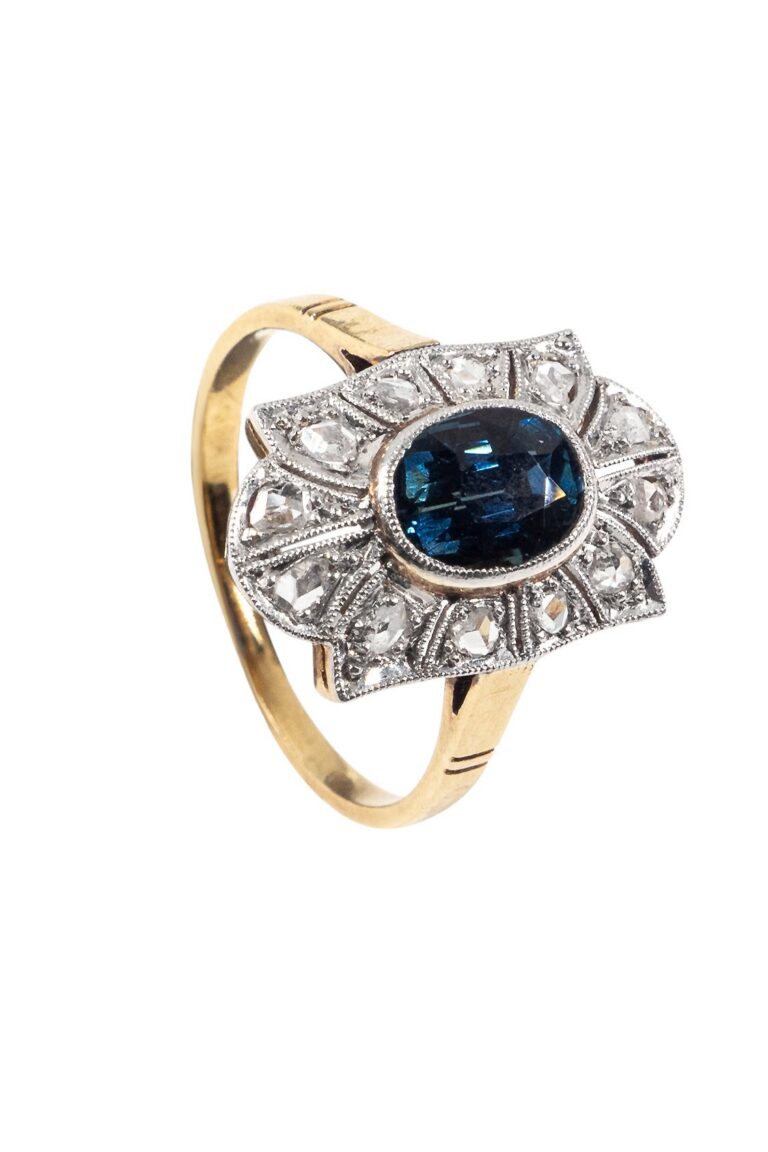 - Verlobungsringe mit Saphir und Diamantcluster wie der Ring von Prinzessin Diana erfreuen sich ununterbrochen großer Beliebtheit → so gefertigt schon seit der späten Victorian Schmuck-Epoche im Art déco durchgehend bis in die Vintage-Zeit,