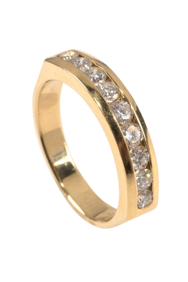 - Ein Damenring kann schlicht glatt, elegant graviert oder mit Stein besetzt sein, z.B. aus dem Art déco Deutschland meist aus 585er Weißgold und Gelbgold