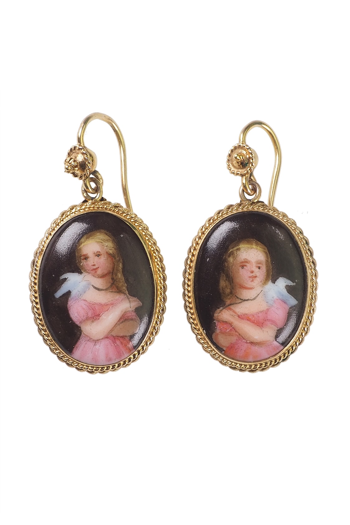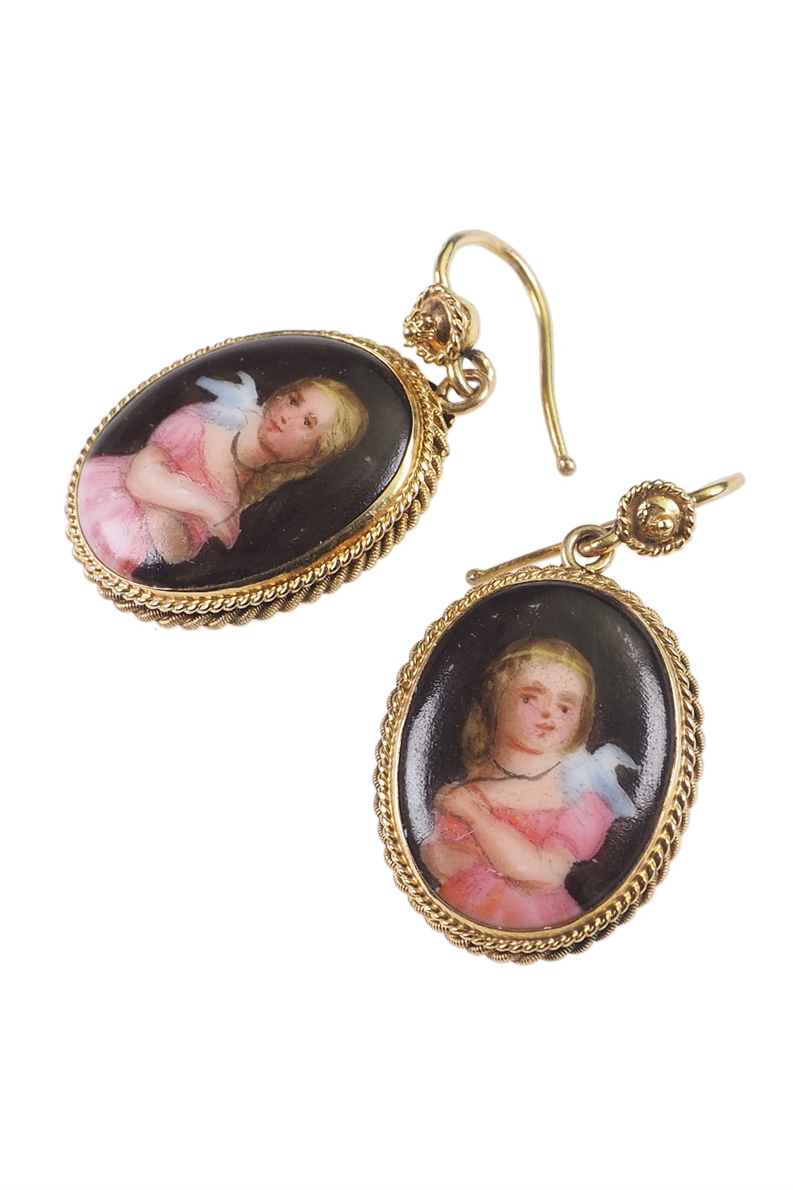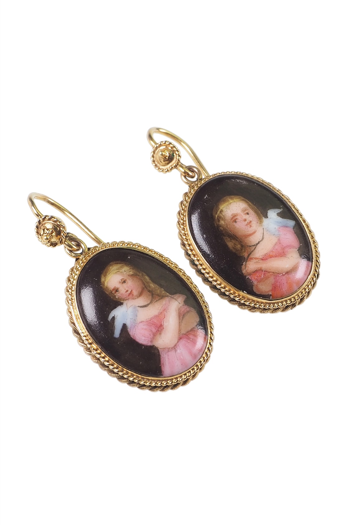 Um 1880 – Porzellanmalerei / Viktorianische Goldohrringe
