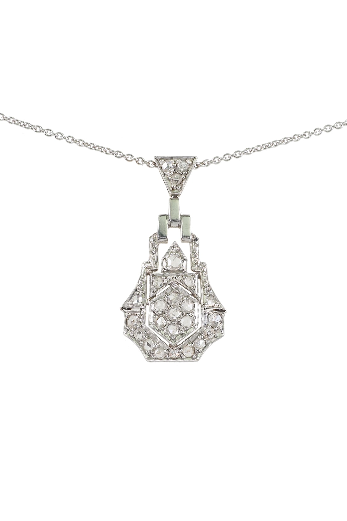 Kette mit Anhänger – 14 ct. Gold, Platin (neue Ankerkette aus 14 ct. Weißgold)
