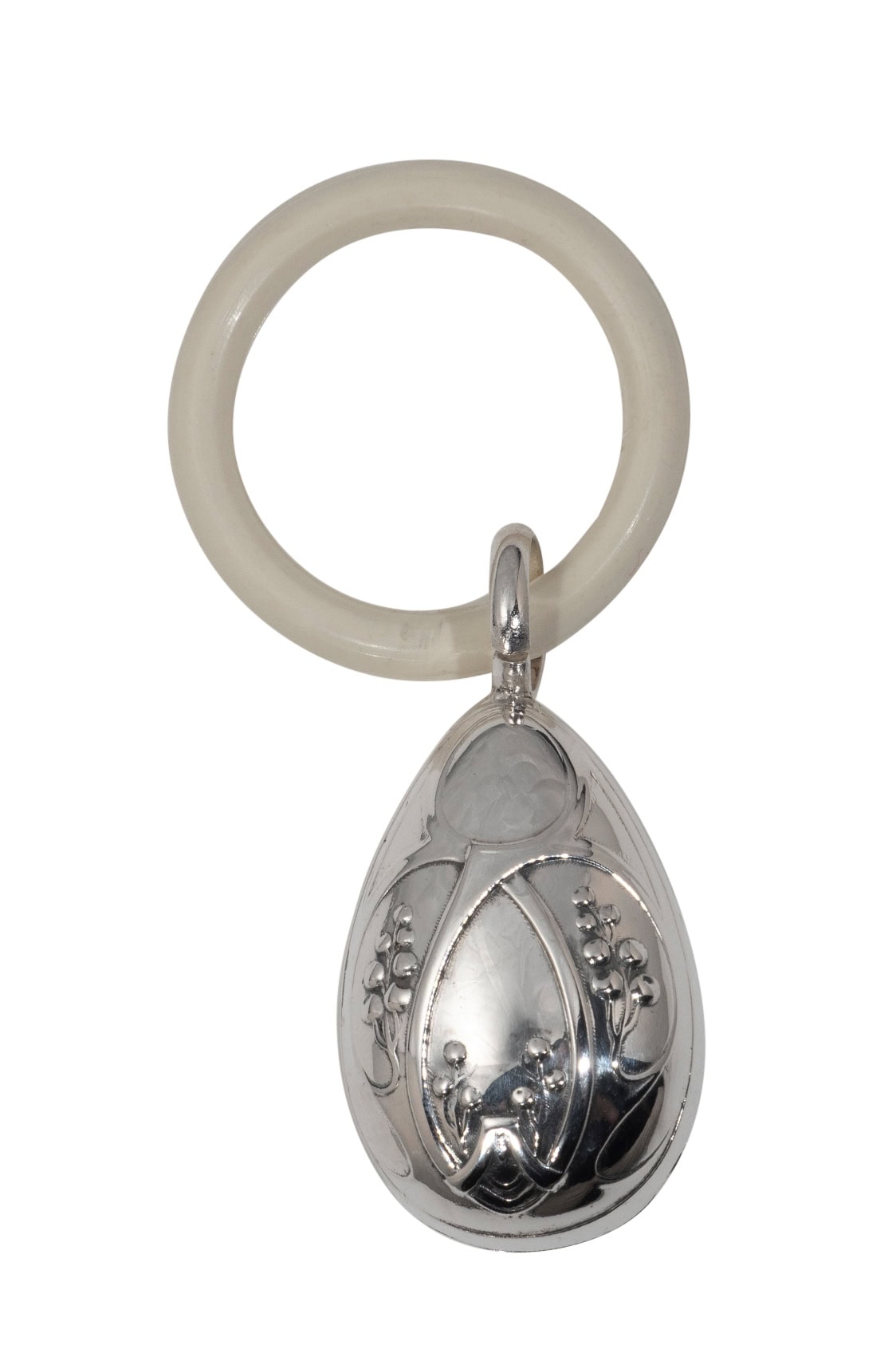 Babyrassel mit Kunststoff Beißring – versilbert